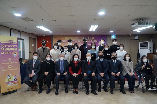 실로암시각장애인복지관이 지난 24일 복지관 강당에서 시각장애 대학생 14명을 대상으로 2021년 상반기 효명장학금 수여식을 개최했다.ⓒ실로암시각장애인복지관 에이블포토로 보기▲ 실로암시각장애인복지관이 지난 24일 복지관 강당에서 시각장애 대학생 14명을 대상으로 2021년 상반기 효명장학금 수여식을 개최했다.ⓒ실로암시각장애인복지관실로암시각장애인복지관이 지난 24일 복지관 강당에서 시각장애 대학생 14명을 대상으로 2021년 상반기 효명장학금 수여식을 개최했다.
