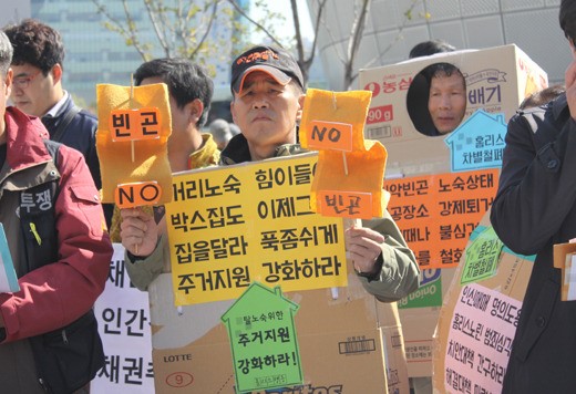 2014년 10월 17일 ‘빈곤 없는 세상을 위한 빈곤철폐 퍼레이드’ 참여한 사람이 '빈곤 NO'라고 적힌 문구를 들고 있다. ⓒ에이블뉴스DB 에이블포토로 보기▲ 2014년 10월 17일 ‘빈곤 없는 세상을 위한 빈곤철폐 퍼레이드’ 참여한 사람이 '빈곤 NO'라고 적힌 문구를 들고 있다. ⓒ에이블뉴스DB