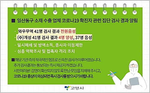 고양시, 확진자 22명 발생 '일산동구 무역회사 확진에 전수검사'