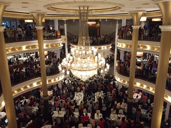 그리고 엘레강스한 만찬을 소개하고 싶습니다. 만찬이 있는 날에는 선상신문에 대문짝만하게 나옵니다. 중요한 것은 이 만찬은 무료이지만 드레스 코드가 있습니다. 편하게 운동복이나 슬리퍼를 신고 입장할 수가 없습니다. 크루즈 여행을 준비하신다면 정장을 필히 챙겨가야 합니다. 멋진 식사와 함께 공연도 즐길 수 있습니다.