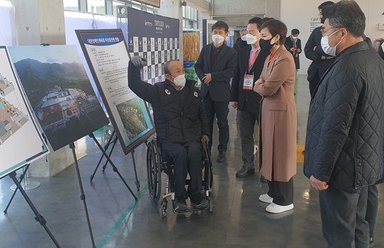 정진완 회장 당선인이 임오경 의원에게 이천훈련원 증축 현황을 설명하고 있다. ⓒ대한장애인체육회
