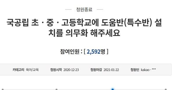- ‘국공립 학교 도움반 설치 의무화’ 국민청원