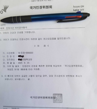 국가인권위원회 부산인권사무소에 진정 후, 학교로부터 특수학급 신설 약속을 받고 진정을 취하했다.ⓒ박 모 씨 제공 에이블포토로 보기▲ 국가인권위원회 부산인권사무소에 진정 후, 학교로부터 특수학급 신설 약속을 받고 진정을 취하했다.ⓒ박 모 씨 제공지난해인 2020년, 자녀가 초등학교 3학년이 되자, 그는 국가인권위원회 부산인권사무소에 아이의 교육권이 침해받고 있다며, 특수학급 신설을 요청하는 진정을 제기했습니다. 국민신문고도 함께 넣었습니다.