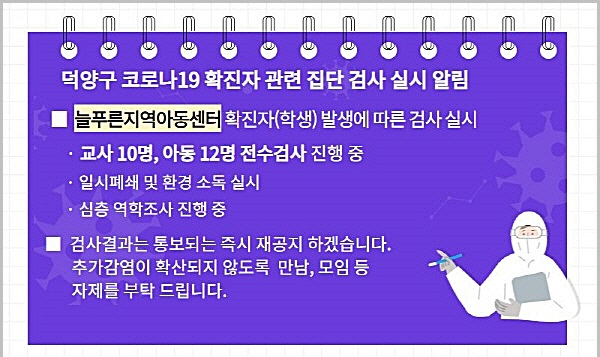 고양시, 확진자 11명 발생 '덕양구 지역아동센터 집단검사 나서'