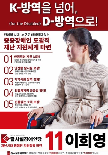 한편, 탈시설장애인당은 지난 25일부터 선거 유세 활동을 이어가고 있으며, 정식 후보 등록이 시작되는 3월 25일 이전까지 활동을 이어갈 예정이다. 탈시설장애인당 가입 링크는 https://www.drparty.or.kr/ 다.