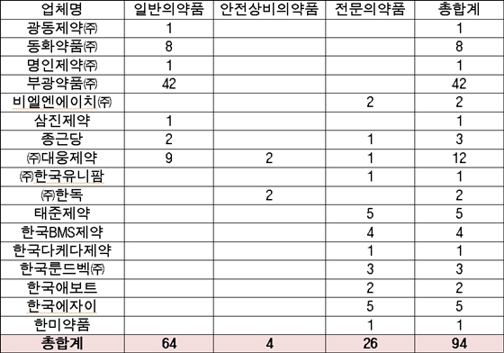 식품의약품안전처 제출자료, 최혜영 의원실 재구성. ⓒ에이블뉴스DB 에이블포토로 보기▲ 식품의약품안전처 제출자료, 최혜영 의원실 재구성. ⓒ에이블뉴스DB식약처가 지난해 국회 최혜영 의원실에 제출한 자료에 따르면 현재 의약품 중 점자표기를 하는 의약품은 총 94개로 일반의약품은 64개, 전문의약품은 26개였으며 안전상비의약품은 4개에 불과했다.