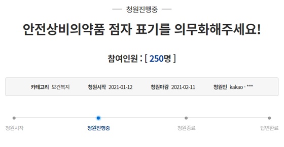 청원인들은 “점자 표기가 이렇게나 미비한 가장 큰 원인으로는 제도적으로 점자 표기가 의무사항이 아닌 권장 사항이기 때문이다”면서 “이로 인해 많은 시각장애인은 생활 속 의약품 사용에 있어서 무수한 오·남용 위험에 노출돼 있다”고 지적했다.