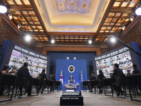 유례가 없는 온·오프라인 신년 기자회견에서 보듯이 올 한 해 동안 코로나19로 온 국민이 어려움을 겪었습니다. 새해에는 다 같이 노력해서 코로나를 극복하고 일상으로 돌아가는 원년이 되었으면 하는 간절한 바람입니다.