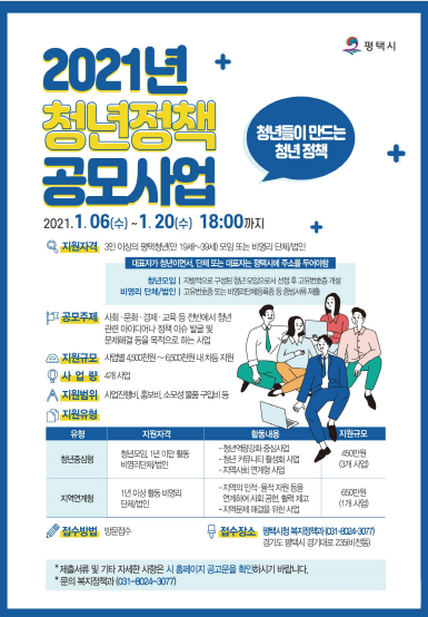 평택시, '2021년 청년정책 공모사업' 공개모집