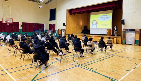 영동군장애인복지관(관장 박병규, 이하 영동장복)이 30일 황간고등학교 1~2학년 총 47명 대상으로 장애인식개선 교육을 진행했다.ⓒ영동군장애인복지관