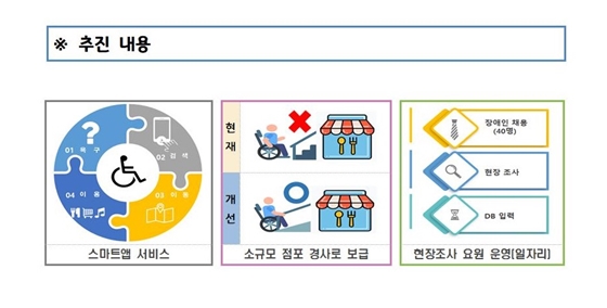 스마트앱 서비스 등 추진내용 이미지. ⓒ경기도청 에이블포토로 보기▲ 스마트앱 서비스 등 추진내용 이미지. ⓒ경기도청경기도가 장애인에게 음식점, 카페, 숙박업소 등 편의시설 정보를 제공하는 스마트앱 서비스를 추진한다고 21일 밝혔다.