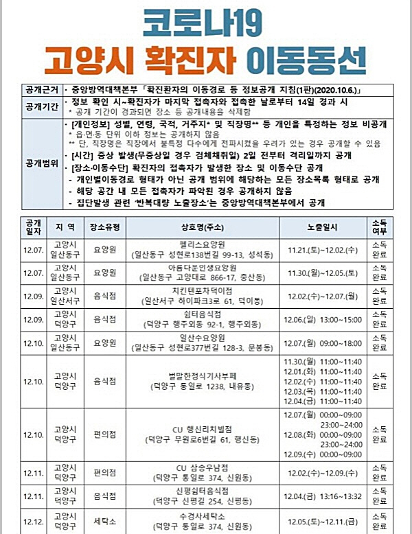 고양시, 확진자 24명(1029~1052번) 발생 '추가 요양원 등 전수검사 나서'