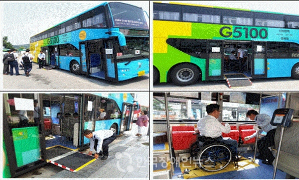 ▲휠체어 사용 장애인이 탑승 가능한 경기도에서 운행 중인 2층 버스(직행좌석형)