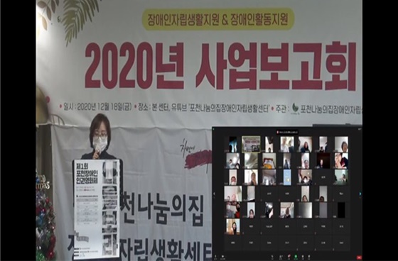 포천나눔의집장애인자립생활센터가 18일 회원과 활동지원사들을 격려하기 위해 ‘2020년 사업보고회’를 온라인으로 개최했다. ⓒ포천나눔의집장애인자립생활센터