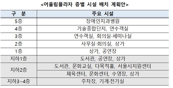 어울림플라자 층별 시설 배치 계획안.ⓒ서울시