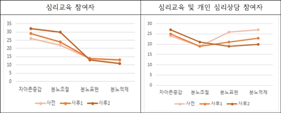 또한 상태 특성 분노 표현 척도 검사 사전·사후 비교 결과는 분노표현과 분노억제 점수가 하향돼 스스로를 긍정적으로 평가하며 조절 가능한 심리구조가 됐다는 것을 검증했다.