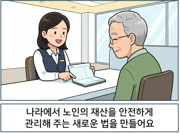 노인의 재산을 안전하게 관리해 주는 새로운 법을 만들어요