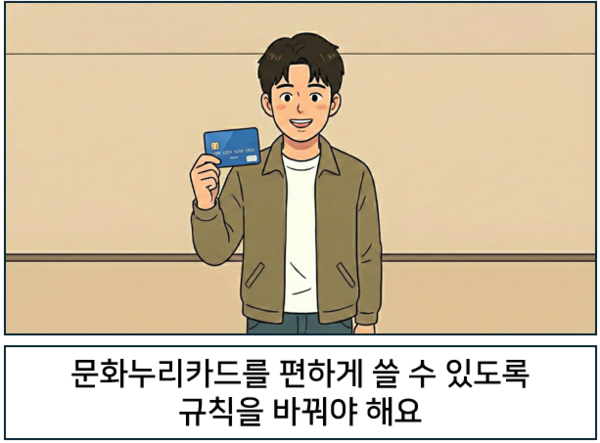 문화누리카드를 편하게 쓸 수 있도록 규칙을 바꿔야 해요