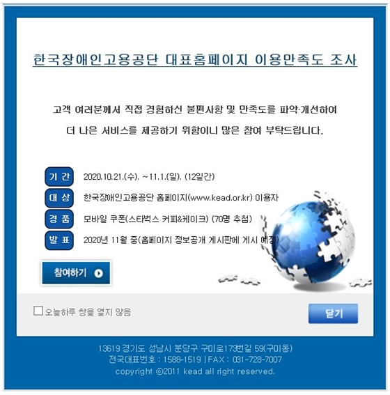 한국장애인고용공단 홈페이지 이용만족도 조사 실시