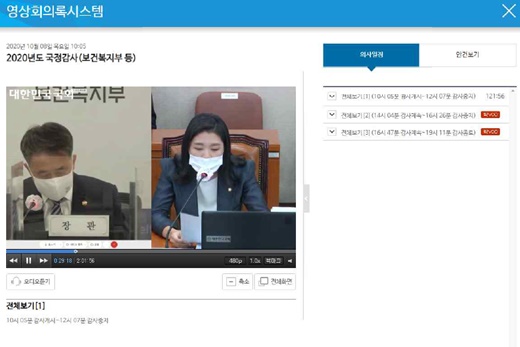 ▲ 7일 열린 상임위원회 국정감사 중계방송 화면 갈무리(자막, 수어통역 없음).ⓒ장애의 벽을 허무는 사람들 장애의 벽을 허무는 사람들(장애벽허물기)가 13일 국회 국정감사 인터넷생중계에 수어통역과 자막을 제공하지 않아 청각장애인들이 차별을 받고 있다며, 박병석 국회의장, 김영춘 국회사무처총장을 상대로 국가인권위원회에 진정을 제기했다.