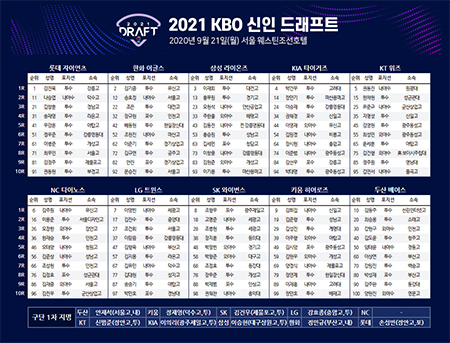▲ 프로야구 2021 신인 드래프트 결과 ⓒKBO 홈페이지 갈무리 올해 프로야구 신인 드래프트에서는 돌발 변수로 인해 큰 문제가 생겼습니다.