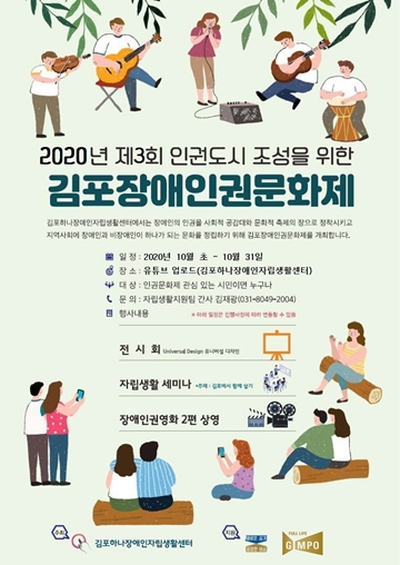 ▲ 김포장애인권문화제 포스터. ⓒ김포하나장애인자립생활센터 김포하나장애인자립생활센터(센터장 장준형, 이하 김포하나IL센터)가 오는 31일까지 2020년 제3회 범시민적 인권도시 조성과 사회통합을 위한 김포장애인권문화제(이하 문화제)를 온라인으로 개최한다.