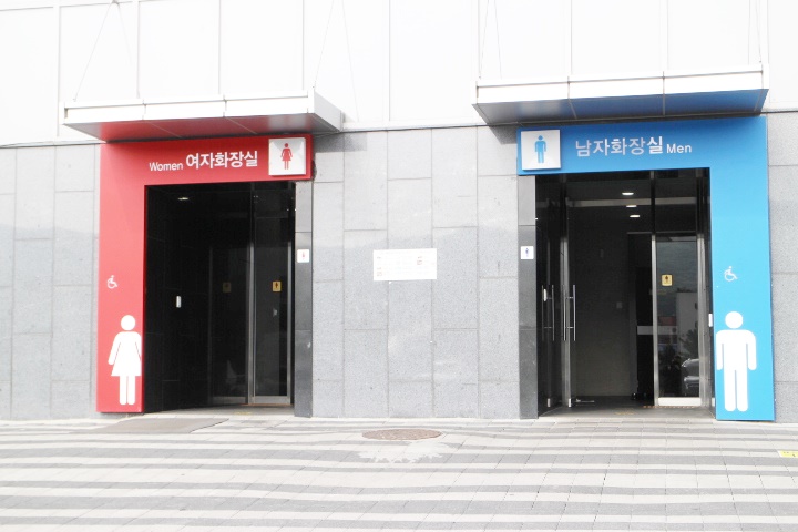 남녀비장애인화장실에는 시각장애인이 손끝으로 만져 성별을 알 수 있는 점자표지판이 초입 벽면이 아닌, 안쪽으로 들어가 만나는 입구벽면에 설치돼 있다.