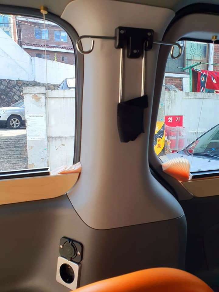 산소호흡기 사용하신분들 위해 차량 내에 콘센트가 있으며 비상버튼까지 설치 되어 있다.