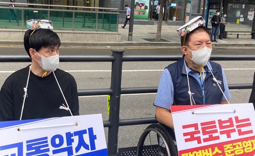 그러나 국토부는 시범사업이라 예산이 없다는 이유로 장애인이 탑승할 수 없는 일반버스를 도입한다는 것이 전장연의 주장.