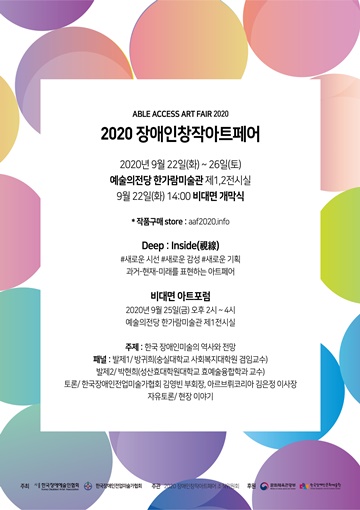 아트포럼 비대면 신청은 20일까지 2020장애인창작아트페어 사무국 전화 02-753-1261, 이메일 2020aaf@naver.com으로 이름과 연락처를 남기면 된다.