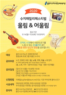 언택트 시대에 서로의 온기를 느낄 수 있는 온(溫)택트 공모전이 축제의 주제로 용인시수지장애인, 노인복지관에서 평생교육 프로그램을 이용하는 장애인과 노인은 누구나 참여할 수 있다. 공모 영역은 춤, 노래, 기악, 미술 등 4개다.