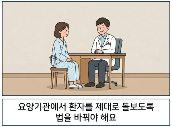 요양기관에서 환자를 제대로 돌보도록 법을 바꿔야 해요