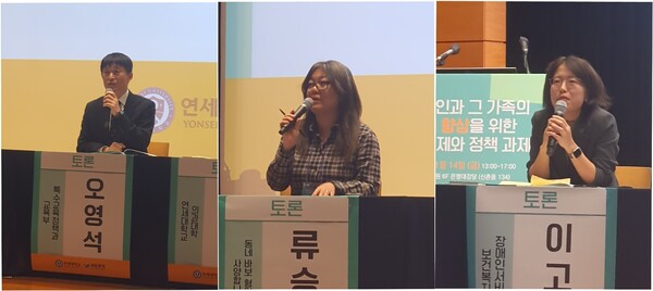 장애인 부모 대표로 류승연 작가가 토론했는데, 그는 발달장애인지원센터에서 사업하는 대신 사람과 장애인복지관 등의 기관을 잇거나 기관과 기관 잇는 코디네이터 역할이 필요하다며, 전문 코디네이터들이 없기에 이들을 양성하는 교육이 필요함을 역설했다. AI와 고실업률 시대에도 돌봄은 AI가 대체할 수 없는 영역이라며, 돌봄 지원인력 전문화를 통해 부모가 자기돌봄할 수 있는 시간 마련이 가능해짐을 피력했다. 아울러 장애를 질병이 아닌 정체성으로 바라보자고 했다.