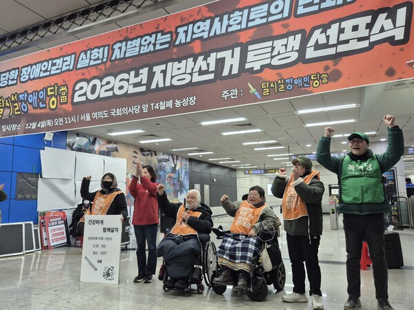 【에이블뉴스 이슬기 기자】내년 6월 지방선거를 6개월여 앞두고 전국장애인차별철폐연대(전장연)가 창당한 '탈시설장애인당'이 돌아왔다.