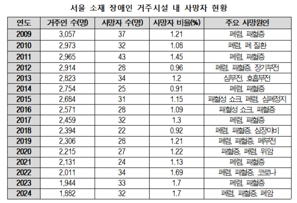 서울 장애인 거주시설 사망률, 전체 장애인보다 5배 높아…폐렴·패혈증 취약