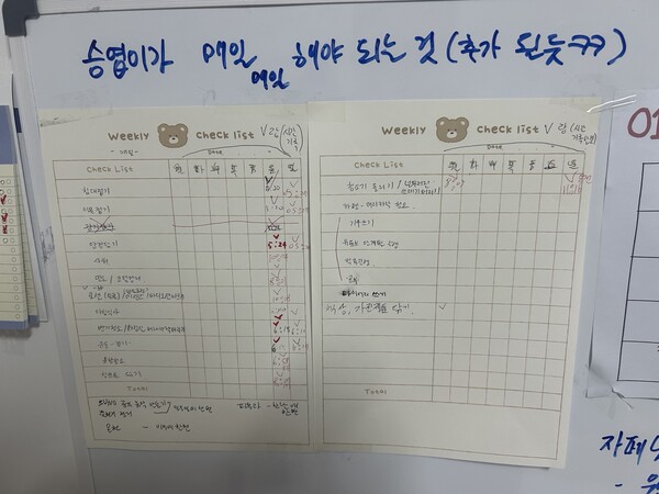 내가 씻는 걸 어려워하자, 누나가 매일 씻는 것을 포함한 자조를 돕는 표를 만들어줬다. 나의 동의도 당연히 있었다. 나는 부모와 그 누구에게도 이러한 도움을 받지 못했다. ©김승엽