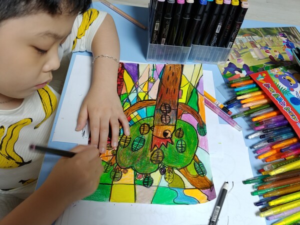 집에서 조용히 홀로 앉아 그림을 그리던 아들은 마치 학교에서의 슬픔을 스스로 위로하는 듯 했다. ©장윤경