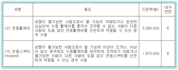 그러나 전동휠체어나 전동스쿠터를 구입하려면 이 가격은 최저 가격이라 대부분이 이 가격보다는 비싸다. 그래서 이 보다 높은 가격은 본인이 더 부담해야 한다. 물론 기초생활수급자는 전액 정부에서 부담하고 그 이상은 본인이 부담해야 한다.