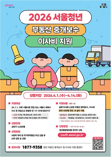 【에이블뉴스 백민 기자】 서울시가 오는 14일까지 2026년 상반기 ‘청년 부동산 중개보수 및 이사비 지원사업’ 참여자 4,000명을 모집한다.