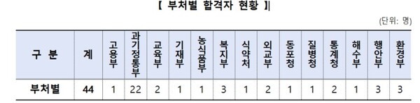 이번 시험의 직급별 최종 합격 인원은 행정, 고용노동, 교육, 전산, 보건 등 분야에서 7급 1명, 8급 3명, 9급 40명이다.