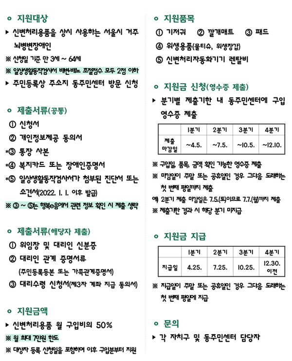 뇌병변장애인 신변처리용품 구입비 지원사업 안내문 (사진 : 서울시)
