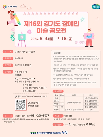 누림센터, ‘제16회 경기도 미술공모전’ 개최‥7월 18일까지 접수