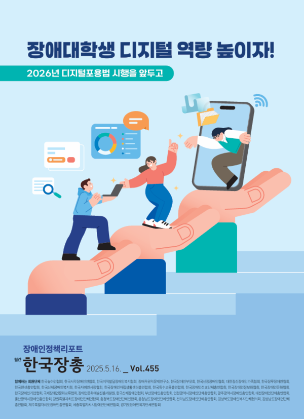 장애인정책리포트 제455호 원문은 한국장총 홈페이지(kofdo.kr)의 자료실에서 상시 열람이 가능하며, 기타 관련 문의는 02-783-0067로 하면 된다.