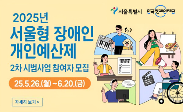 【에이블뉴스 이슬기 기자】한국장애인재단이 오는 6월 20일까지 ‘2025년 서울형 장애인 개인예산제 2차 시범사업’ 참여자 130명을 모집한다.