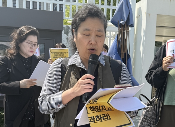 제주장애인권익옹호기관성폭력사건공대위 진영림 대표는 “지난달 28일 시민사회단체들이 모여 제주옹호기관과 제주장애인권포럼, 보건복지부를 대상으로 책임을 다하라는 공동성명을 내고 규탄했으나 그 누구도 답변을 주지 않았다. 더 움직여야 한다는 마음으로 더 많은 단체와 연대해 제주도에 면담을 요청했지만, 도는 시민사회단체는 만나지 않겠다고 답변했다”고 규탄했다.
