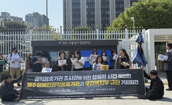 제주장애인권익옹호기관성폭력사건공동대책위원회(이하 제주장애인권익옹호기관성폭력사건공대위)를 비롯한 6개 단체는 28일 오후 2시 정부서울청사 본관 앞에서 ‘권익옹호기관 조사관에 의한 성폭력 사건 묵인한 제주장애인권익옹호기관과 보건복지부 규탄 기자회견’을 개최했다.
