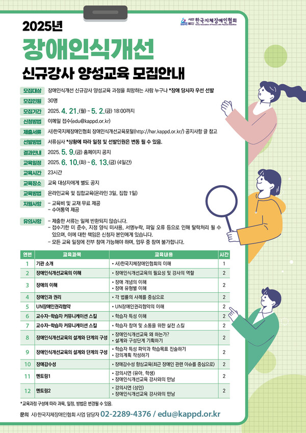 지장협, '2025년 장애인식개선 신규강사 양성교육' 교육생 모집