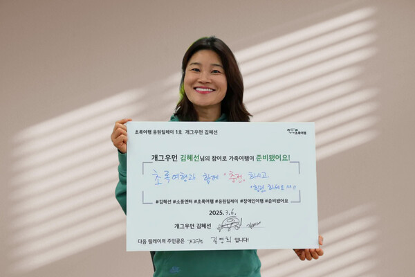 개그우먼 김혜선, 장애인 여행 활성화 ‘초록여행 응원릴레이’ 1호 주자