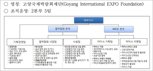 이번 통합은 ‘지방공공기관 혁신 가이드라인(2022.7.)’에 따른 유사‧중복기능 기관의 통폐합 일환으로, 고양국제꽃박람회와 고양컨벤션뷰로(CVB)를 통합(통합기관 명칭: 고양국제박람회재단 Goyang International EXPO Foundation)해 고양국제꽃박람회 재단의 기능을 확대하여 고양국제꽃박람회의 국제화, 화훼산업 및 마이스산업 활성화에 기여하도록 하고 있다.