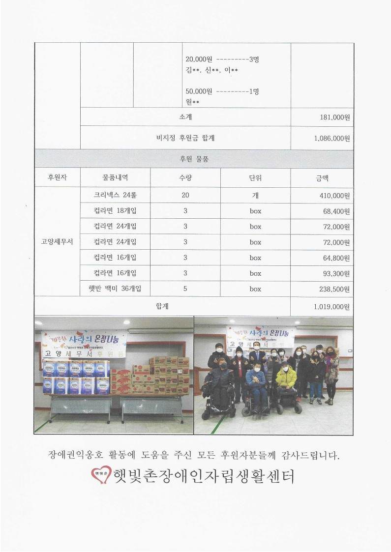 2022년 1월 후원금 수입 내역 보고 페이지 정보 작성자 햇빛촌 조회 1,675회 작성일 22-06-07 20:32 본문 2022년 1월 후원금 수입 내역 보고 목록 이전글2022년 2월 후원금 수입 내역 보고 22.06.07 다음글「고양시민 모두가 편리한 사전투표소」 안내 22.05.24 댓글목록 댓글목록 등록된 댓글이 없습니다.
